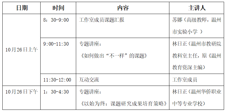 关于举行温州市林彬“名师送教”工作室第20次活动的通知